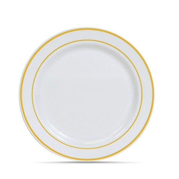 6 assiettes REUTILISABLES rondes blanches bord or 26cm