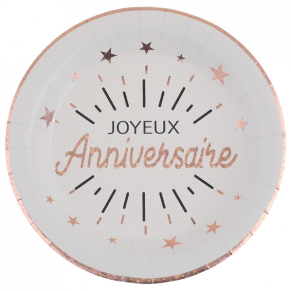 10 assiettes Joyeux Anniversaire Blanc/Rose Gold