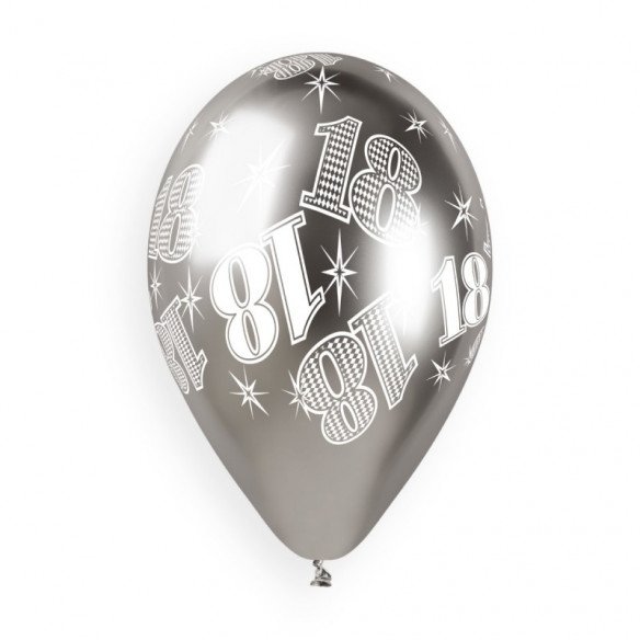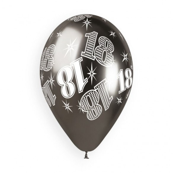 Ballon anniversaire 18 ans brillant 33 cm (sachet de 5)