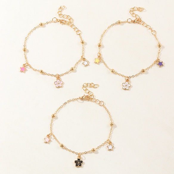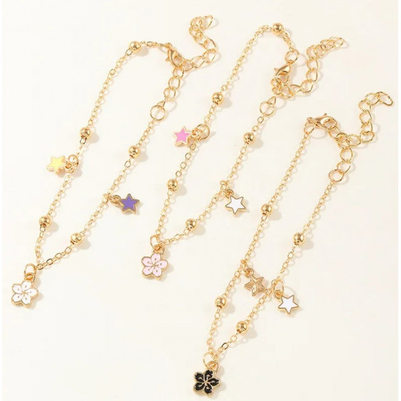 Lot de 3 bracelets métal pendants fleurs et étoiles