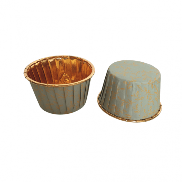 Boite de 12 caissettes cupcake vert olive motif feuilles
