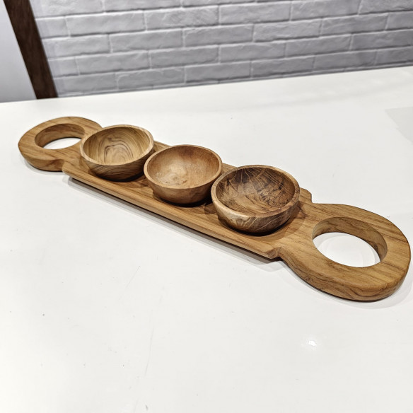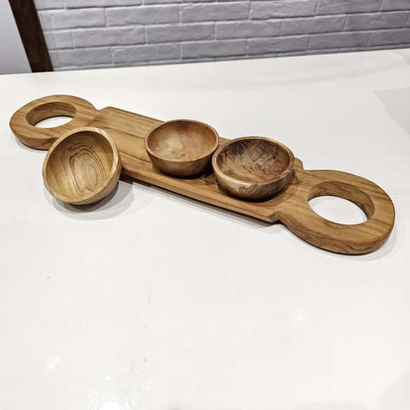 Plateau Apéritif avec 3 Bols en Teck Massif